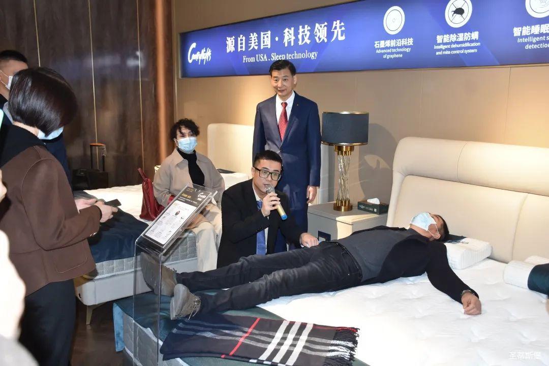 12月25日上午,按照发布会流程安排,参与发布会的嘉宾先到名家居世博园【梦凯莎】旗舰店进行了参观。上午9:45分,经销商嘉宾们陆续来到名家居世博园2楼——美国梦凯莎的展厅里,365英国上市集团集团营销总经理陈玉伟先生带领梦凯莎杨讲师团队为嘉宾们讲解【梦凯莎床垫】新品系列的10种睡感体验及材质工艺,让嘉宾们从工艺特点,科技睡感上,实时体验【梦凯莎床垫】的独有特色。“一张好床垫,睡出好健康”,“梦凯莎”品牌以其卓尔不群的产品优势和为专为国人打造健康舒适睡眠的品牌理念赢得了在场经销商的一致好评。