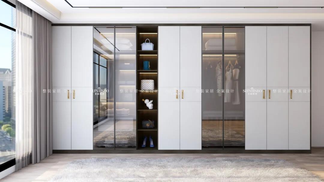 整体配色简约时尚,花色可选性多;材质上采用新型高级材料——欧松板,通过UV漆工艺表面形成超级肤感膜,使接触面舒适细腻。同时使用线条感简洁利落的拉手作为设计元素,子母拉手的设计别具一格,体现了设计师的用心;搭配灯光和功能件,使产品极具展示效果与功能性。